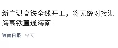 不用坐飛機,不用坐船;直接坐高鐵就能來海南。。。