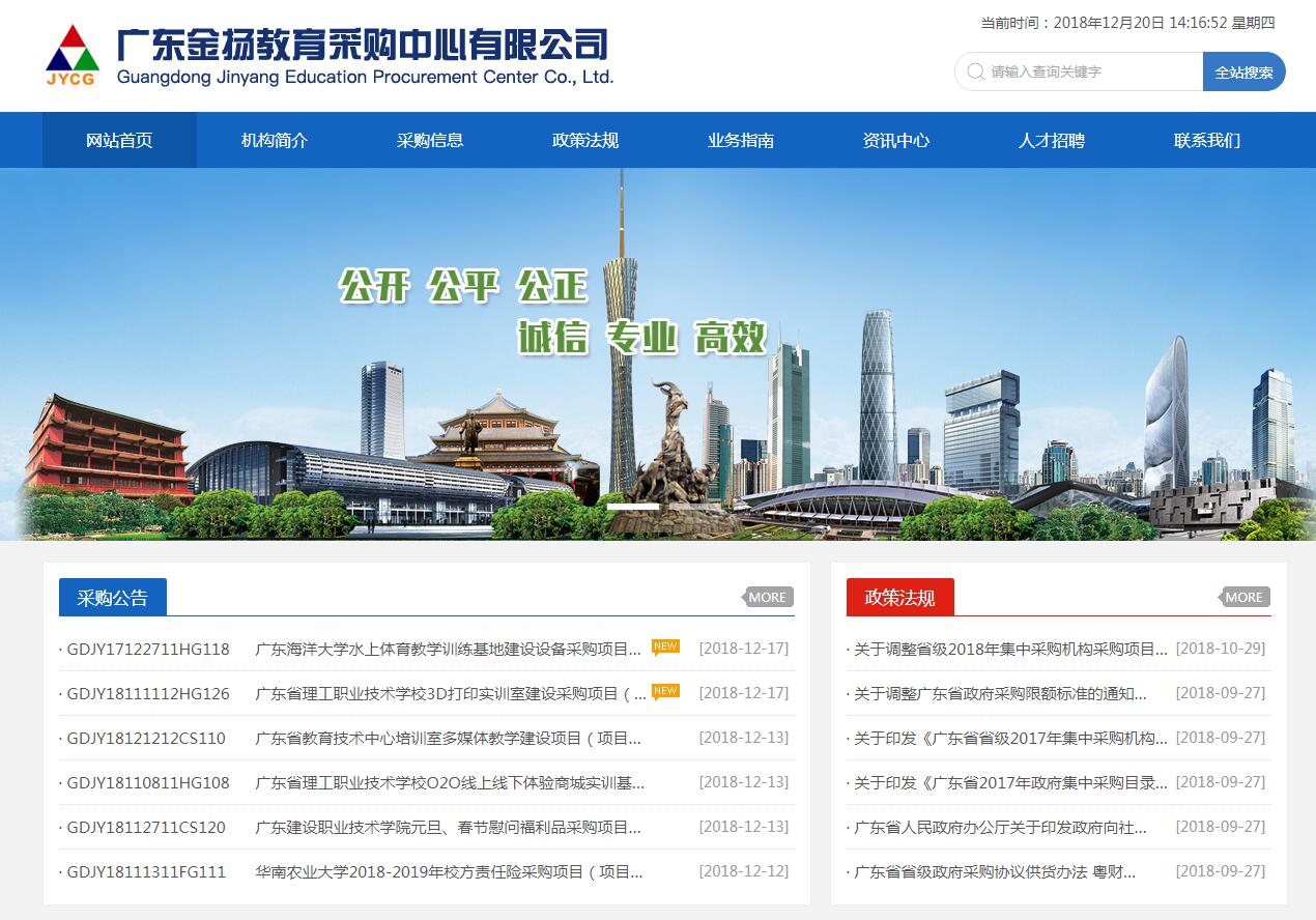 廣東金揚教育采購中心有限公司是2008年3月10日經廣東省工商行政管理局核準登記設立,注冊資金人民幣500萬元,具備國家財政部授予的政府采購甲級代理機構資質。我公司依法專職從事貨物和服務公開招標、競爭性磋商、競爭性談判、單一來源、詢價等政府采購咨詢、招標代理業務,同時致力于包括企業采購招標在內的其它領域拓展,為用戶提供合法、便捷、優質、高效和價格合理的服務。